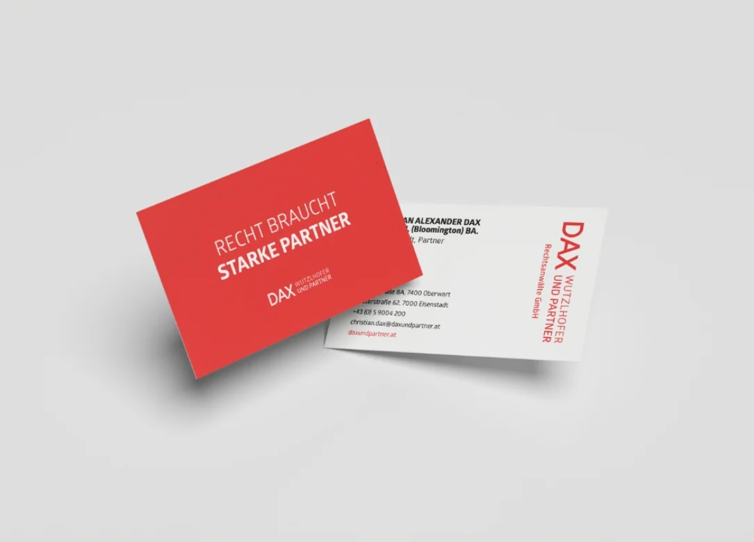 Für DAX & Partner, eine namhafte Anwaltskanzlei, haben wir ein umfassendes Re-Branding gemacht. Wir haben von einem neuen Logo bis zu einem stimmigen Corporate Design und einer maßgeschneiderten Website alles erneuert. Natürlich haben wir auch die passenden Stationeries kreiert, die jetzt jede ihrer Korrespondenzen besonders hervorheben.