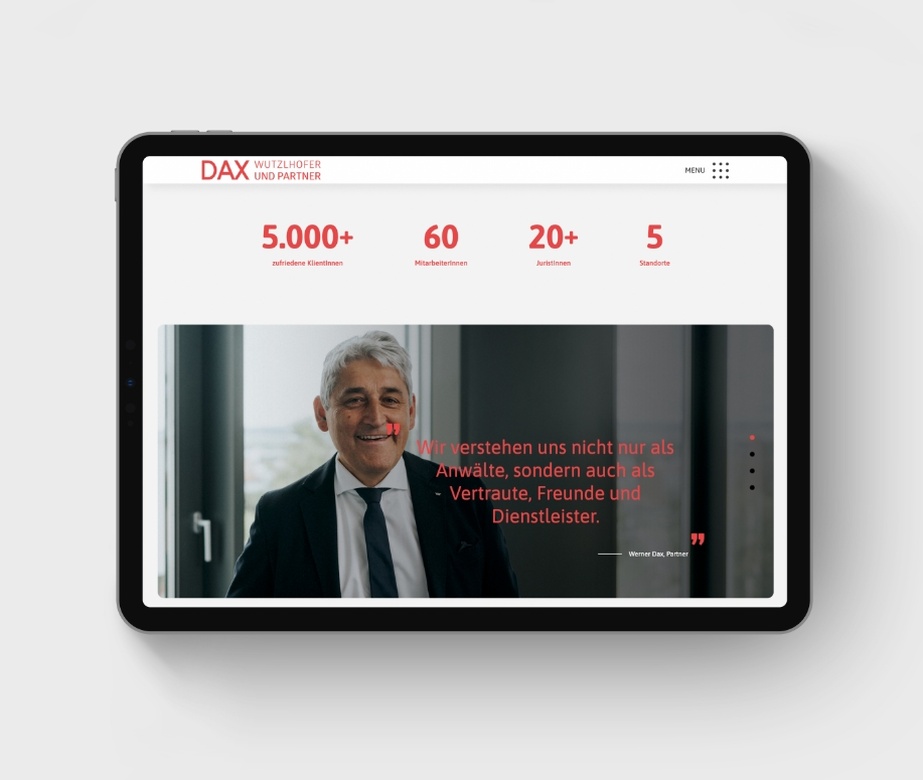 Für DAX & Partner, eine namhafte Anwaltskanzlei, haben wir ein umfassendes Re-Branding gemacht. Wir haben von einem neuen Logo bis zu einem stimmigen Corporate Design und einer maßgeschneiderten Website alles erneuert. Natürlich haben wir auch die passenden Stationeries kreiert, die jetzt jede ihrer Korrespondenzen besonders hervorheben.