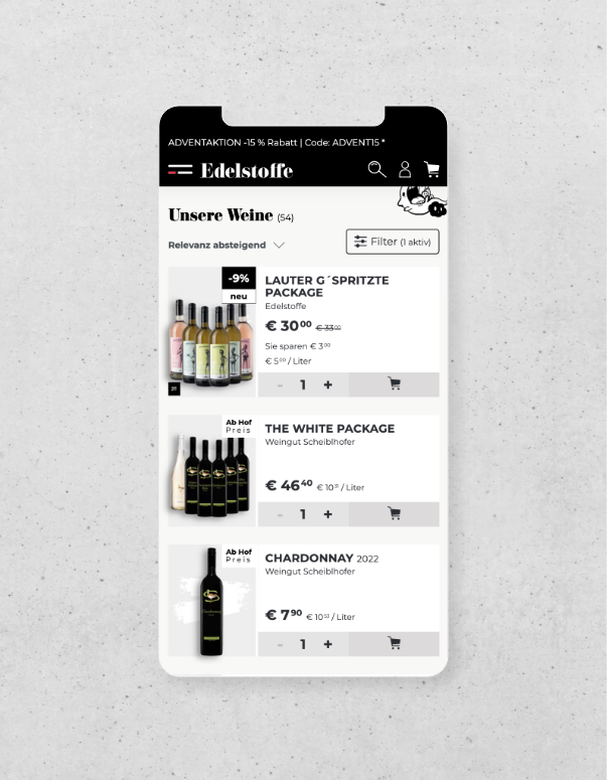 Unser Edelstoffe - wine, spirits & more - Shop ist unser kleines Versuchslabor in Trausdorf. Während online & vor Ort die besten Weine und Spirituosen aus aller Welt verkauft werden, feilen wir im Hintergrund an der perfekten Online-Marketing Strategie und testen neue Herangehensweisen.