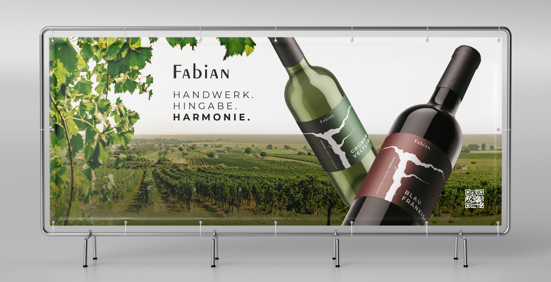 Bei der kompletten Neugestaltung des Weinguts Fabian haben wir ein unverwechselbares Etiketten-Design und Packaging sowie eine moderne Website kreiert.Zusätzlich wurde der Buchstabe 'F' kreativ illustriert, um als charakteristisches Element in allen Marketingmaterialien zu dienen und die Marke einzigartig zu präsentieren.