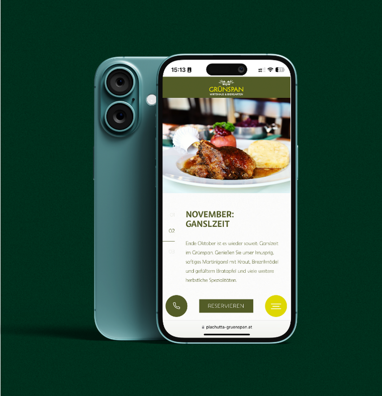 Auch die Online-Auftritte von Grünspan und Mario in Hietzing haben ein umfassendes Rebranding erhalten. Zudem begleiten wir das neue Restaurant am Neuen Markt zur Eröffnung im November 2024 digital. Das Ergebnis: eine markante Präsenz, die das exklusive Niveau, die Tradition und die zeitgemäße Gastlichkeit von Plachutta perfekt widerspiegelt. Mit Stolz präsentieren wir eine digitale Darstellung, die die exquisite Qualität, die traditionsreiche Geschichte und die moderne Gastfreundschaft von Plachutta in jedem Aspekt der Online-Kommunikation verkörpert.