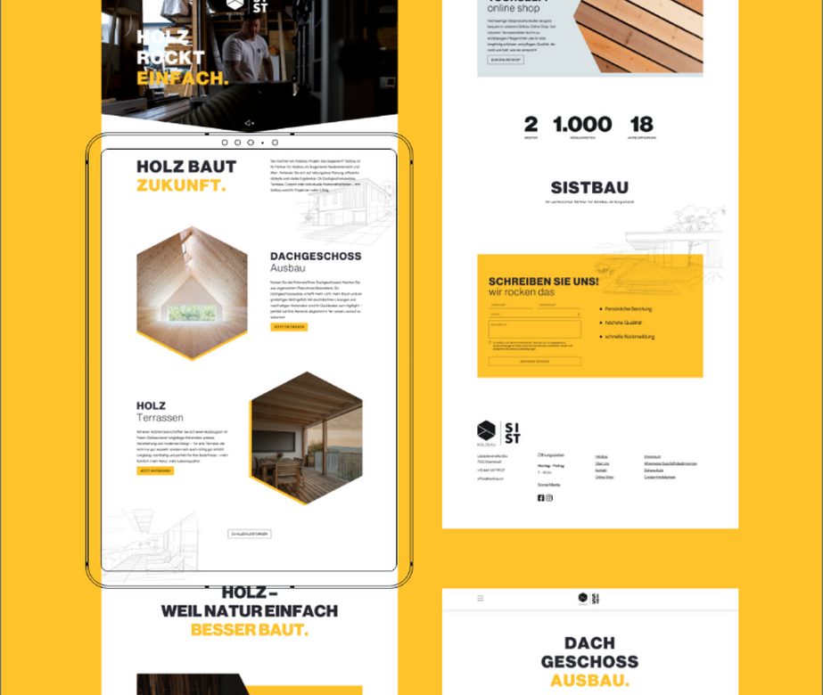 Für SIST Holzbau haben wir eine neue Website entwickelt, die mit einem frischen Design und modernem Branding überzeugt. Durch die Verwendung kontrastreicher Farben wie Gelb und Schwarz haben wir einen markanten Look geschaffen, der die Energie und Professionalität des Unternehmens widerspiegelt. Neue, hochwertige Fotos und grafische Elemente setzen die Leistungen und Referenzen von SIST Holzbau ins rechte Licht. Ein besonderes Highlight ist der coole Slogan „Holz rockt einfach!“, der das Team authentisch präsentiert und der Marke eine persönliche, moderne Note verleiht. Kurz gesagt: eine Website, die nicht nur gut aussieht, sondern auch richtig rockt.