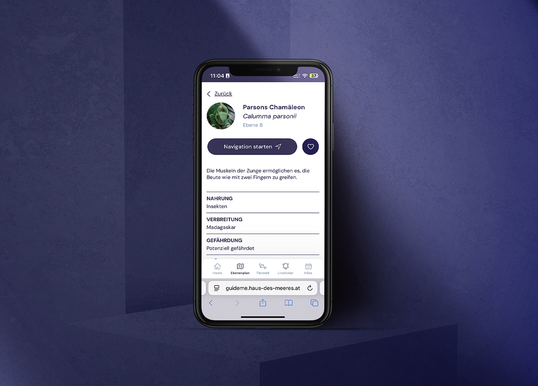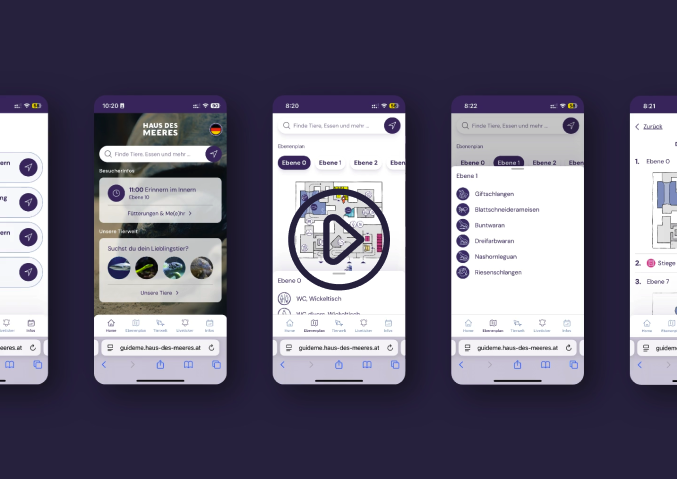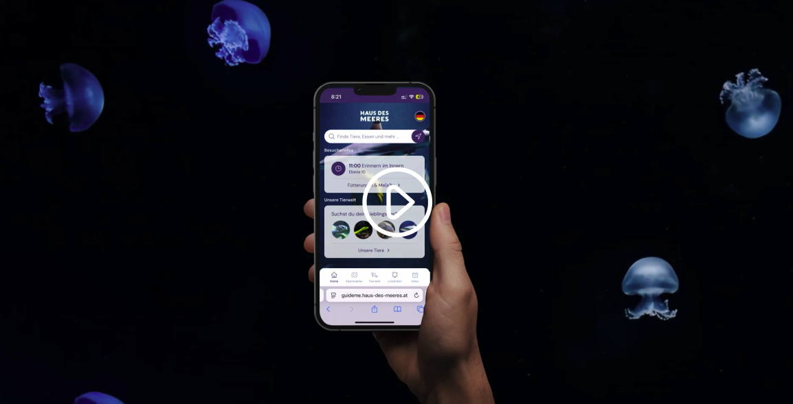 Für das Haus des Meeres haben wir eine Web-App entwickelt, die weit mehr ist als ein digitaler Guide: Sie ist Orientierungshilfe, Wissensvermittler und Erlebnisverstärker in einem – konzipiert, gestaltet und programmiert für einen Besuch, der nachhaltig beeindruckt.
