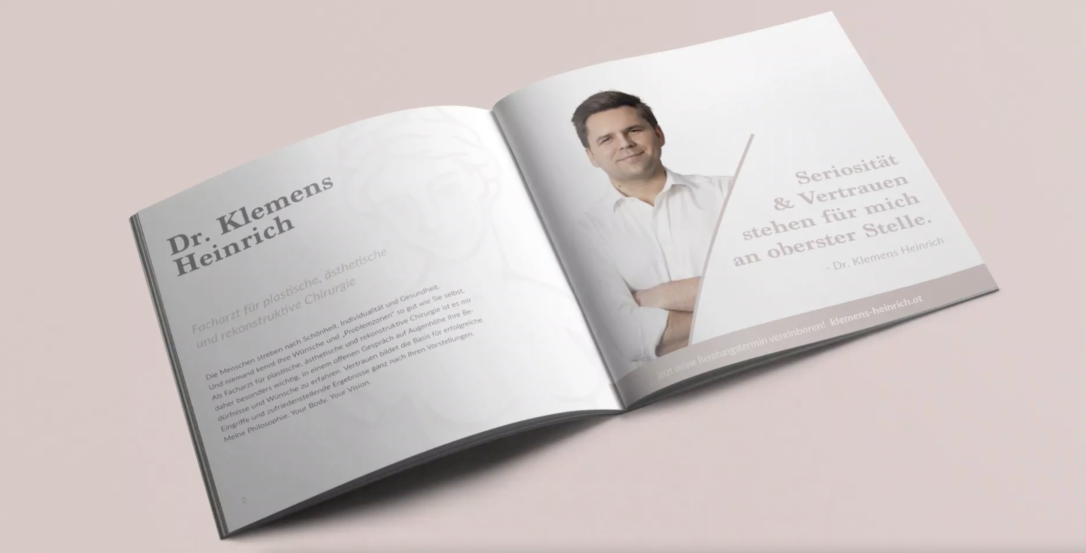 Bei diesem Projekt wurden wir beauftragt, einen professionellen Web - Auftritt für Schönheitschirurgen Dr. Klemens Heinrich zu schaffen. Nach der Festlegung der CI wurde nicht nur die Website, sondern auch das Design der wichtigsten Druckunterlagen von der Brandgang in Angriff genommen.