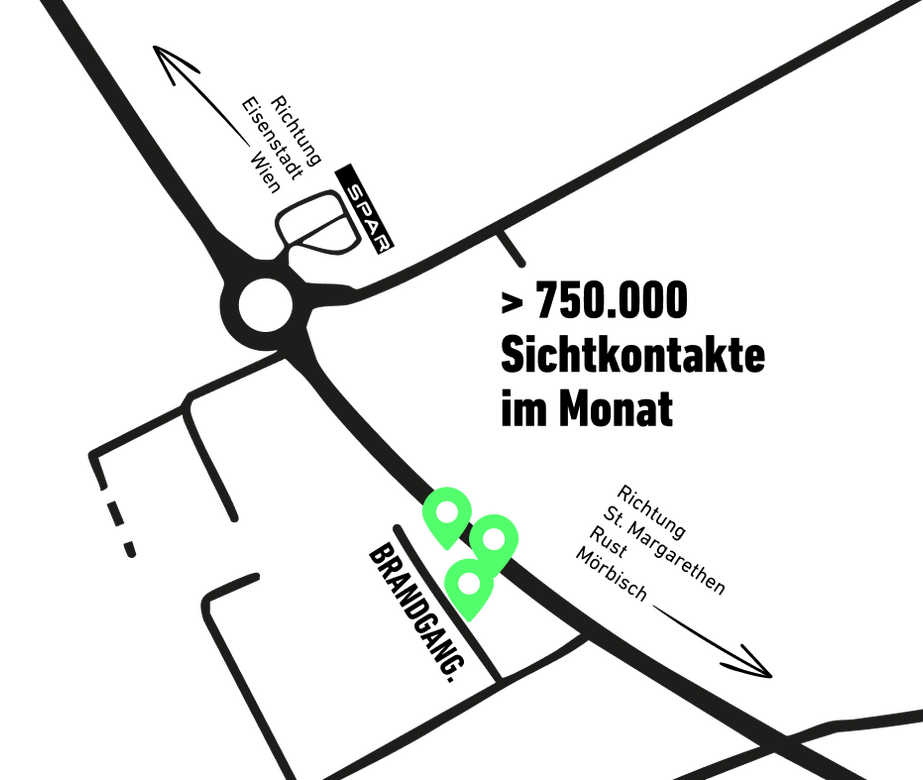 Unsere Werbeflächen in Trausdorf liegen direkt an der A3 – am Hauptverkehrsweg von Wien ins Burgenland. Hier erreichen Sie hunderttausende Menschen pro Monat, auf dem Weg zu Hotspots wie dem Familypark, Rust, Mörbisch oder dem Neusiedler See. Ob Eventbewerbung, Imagekampagne oder Markeninszenierung: Unsere Plakatwände bringen Ihre Botschaft groß raus – Tag und Nacht sichtbar, klar positioniert und unübersehbar im Vorbeifahren.