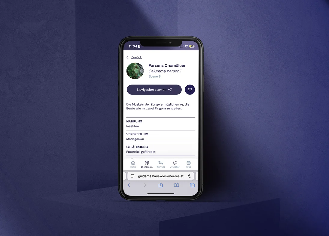 Für das Haus des Meeres haben wir eine Web-App entwickelt, die weit mehr ist als ein digitaler Guide: Sie ist Orientierungshilfe, Wissensvermittler und Erlebnisverstärker in einem – konzipiert, gestaltet und programmiert für einen Besuch, der nachhaltig beeindruckt.