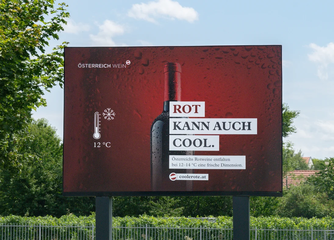 Für die Österreich Wein Marketing (ÖWM) haben wir eine Kampagne entwickelt, die Rotwein aus der klassischen Komfortzone holt und ihm einen frischen, urbanen Auftritt gibt. Der Claim „ROT KANN AUCH COOL“ steht im Mittelpunkt: kraftvoll, modern und aufmerksamkeitsstark.
