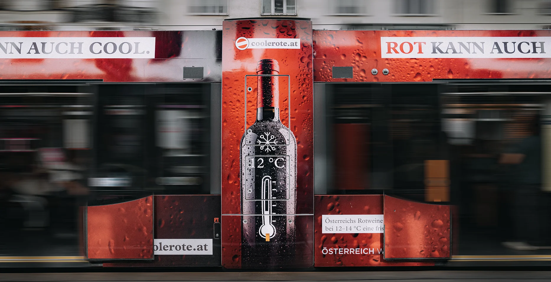 Von Social Media Assets wie Reels über klassische Inserate, Billboard- und Straßenbahn-Branding bis zu Tischaufstellern und einem einheitlichen Key Visual haben wir ein Kampagnenpaket geschnürt, das online und im Stadtbild sofort ins Auge fällt. Der Mix aus starken Headlines, minimalistischen Designs und KI-unterstützten Illustrationen zeigt, dass Rotwein viel mehr kann als nur traditionell zu wirken. Er kann edgy, stylish und überraschend cool sein.